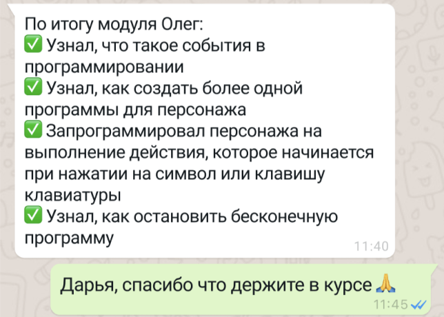 Внучка увлеклась занятиями и даже немножко расстроилась, что курс заканчивается. Спасибо, что развиваете в детях желание учиться. Очень ждём следующий учебный курс.